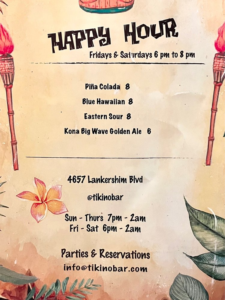 Tiki No is a tiki-themed bar located in North Hollywood, offering a fun atmosphere with outdoor seating and happy hour specials. Customers praise the unique decor and friendly service, as well as the delicious cocktails like the Blue Hawaiian and pina colada. While the bar primarily focuses on drinks, they also offer snacks like assorted potato chips. The bar features a full bar, TV, pool table, and free Wi-Fi, making it a great spot for a night out with friends. If you're looking for a lively place with good vibes and tasty drinks, Tiki No is the place to be.